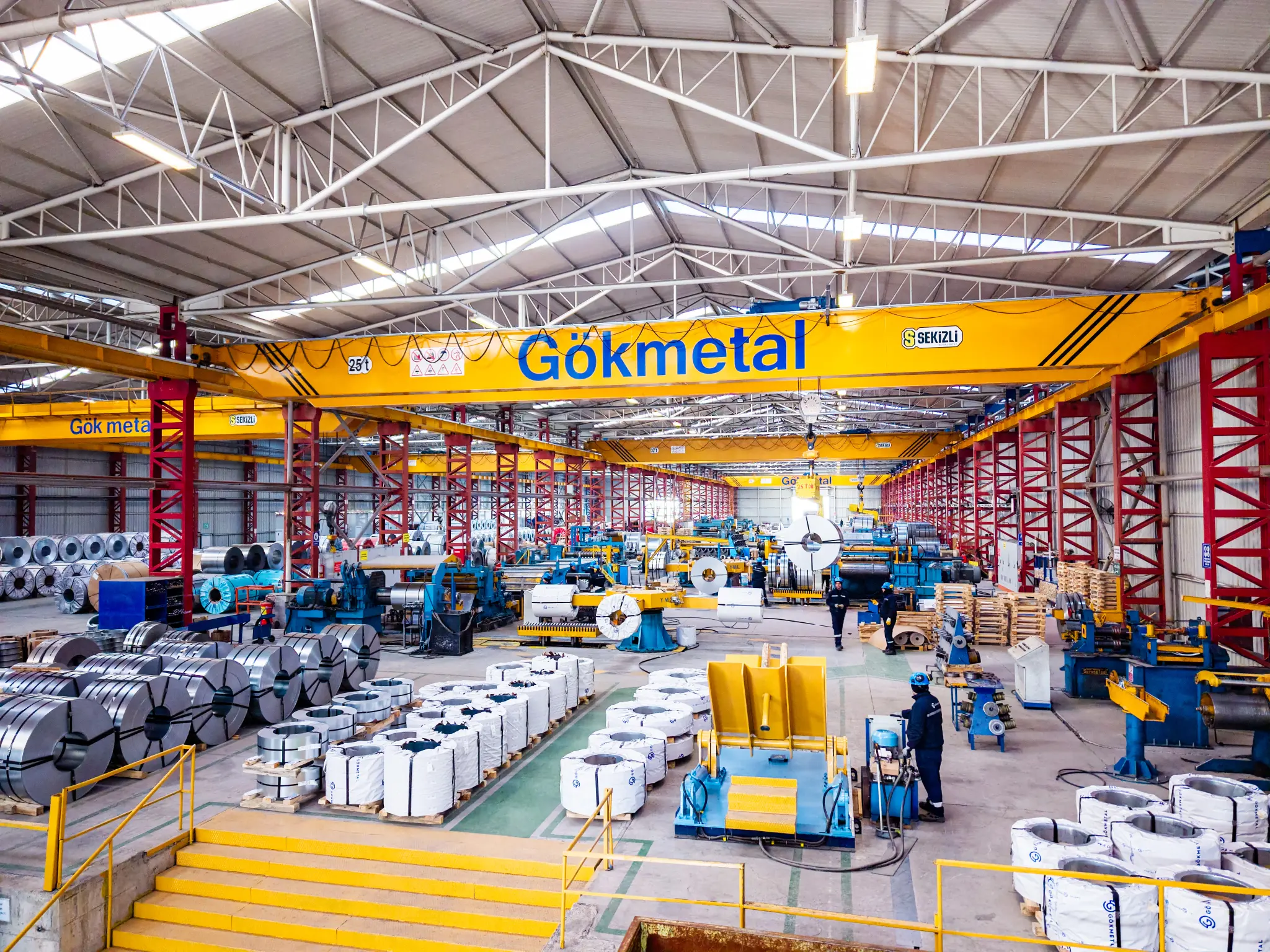 Gökmetal, Gebze ve Ereğli’deki tesislerinde yüksek kapasiteli hatlarıyla yassı çelik işleme hizmeti sunmaktadır.